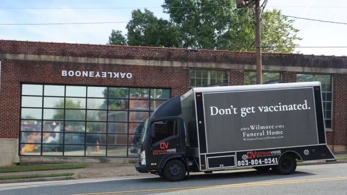 El contundente mensaje que emitió la funeraria estadounidense Wilmore hace parte de una campaña para las personas que se niegan a vacunarse contra el covid-19.