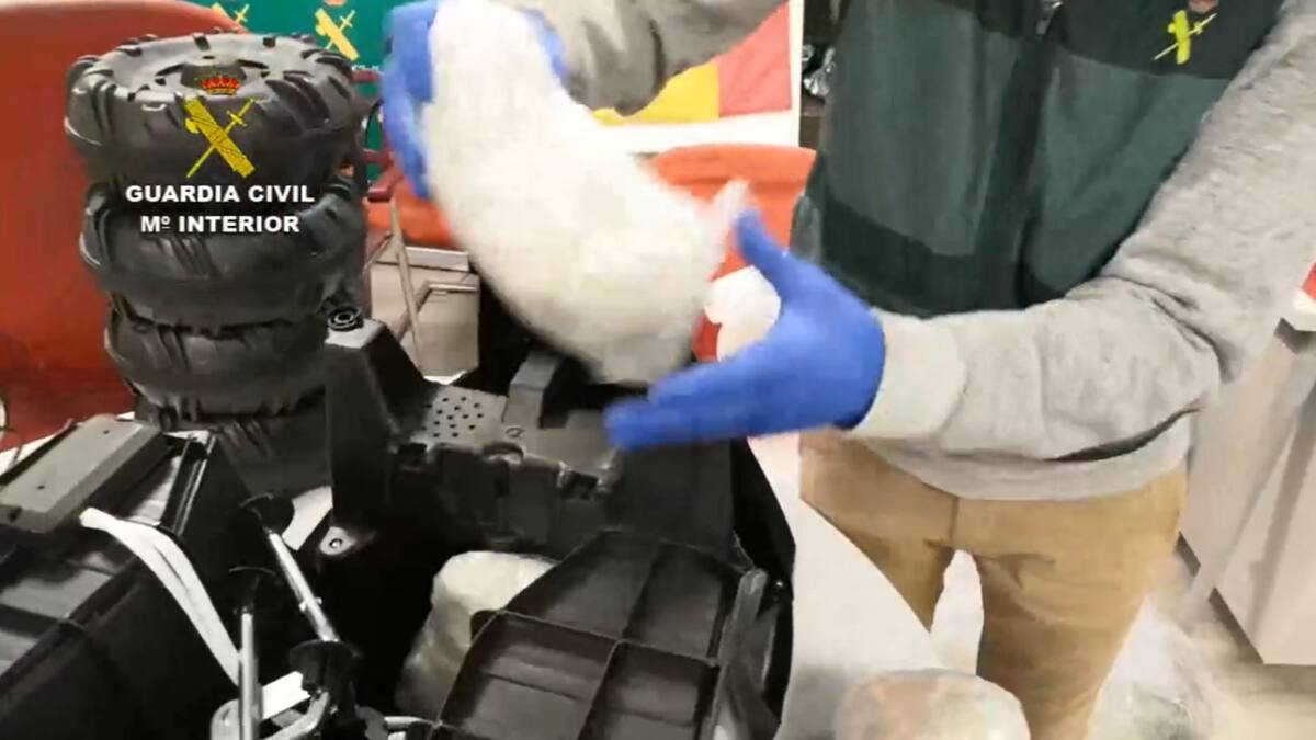 Según informó este domingo la Guardia Civil española, los agentes se incautaron de 7,7 kilos de MDMA, 74 gramos de cocaína rosa 'tusi' y un kilo de sustancias de corte.