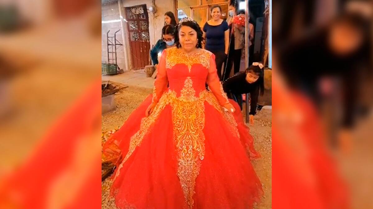 Los nietos de la mujer se pusieron de acuerdo con el resto de la familia para alquilar un vestido rojo completo – con corona incluida –, cambiar la zapatilla, acompañarla con todos los integrantes y bailar el vals en el marco de la celebración del cumpleaños 60 de la mujer.