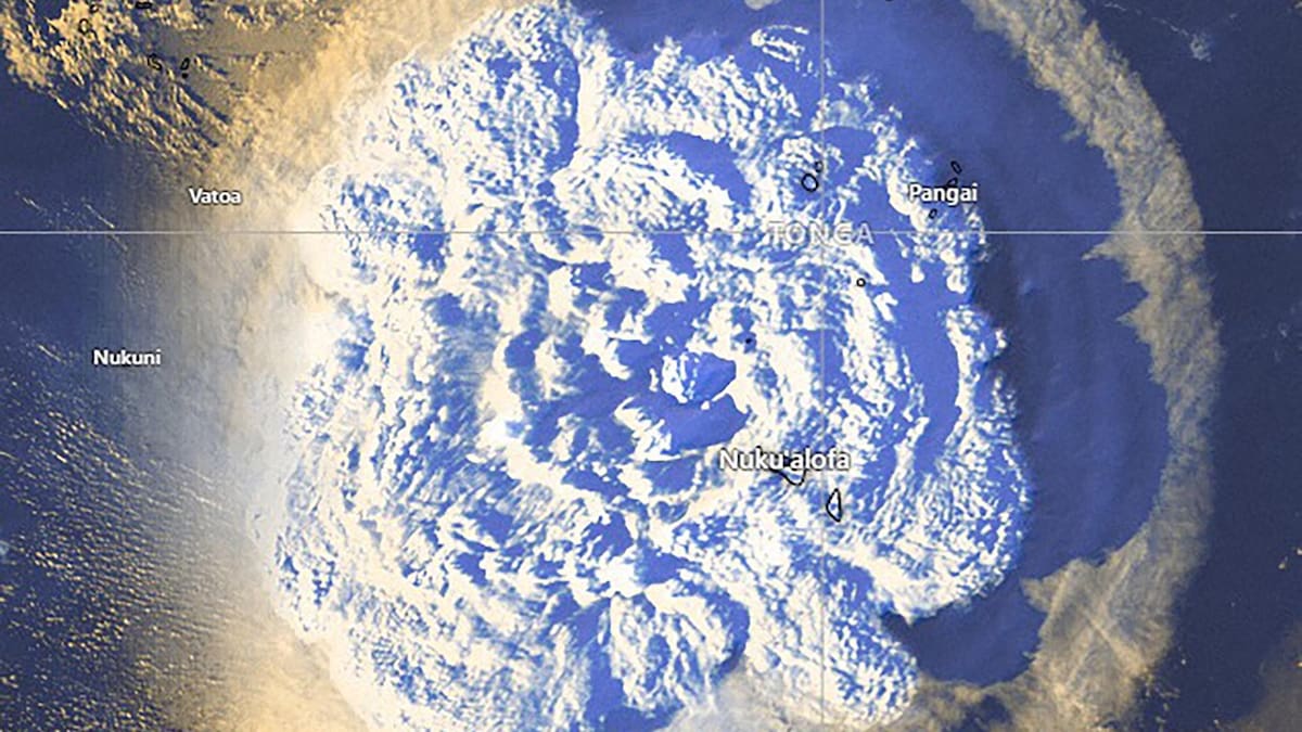 El volcán submarino Hunga-Tonga-Hunga-Ha'apai, ubicado a unos 65 kilómetros al norte de la isla tongana de Tongatapu, registró una erupción de unos ocho minutos alrededor de las 17.20 hora local (4.20 GMT) y lanzó una enorme columna de ceniza a kilómetros de altura.