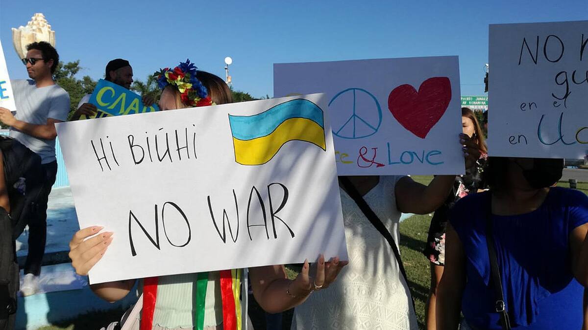 Un centenar de integrantes de la comunidad ucraniana y rusa radicados en diferentes puntos de Quintana Roo realizaron la tarde de este domingo una manifestación pacífica en el centro de Cancún por la invasión a Ucrania.