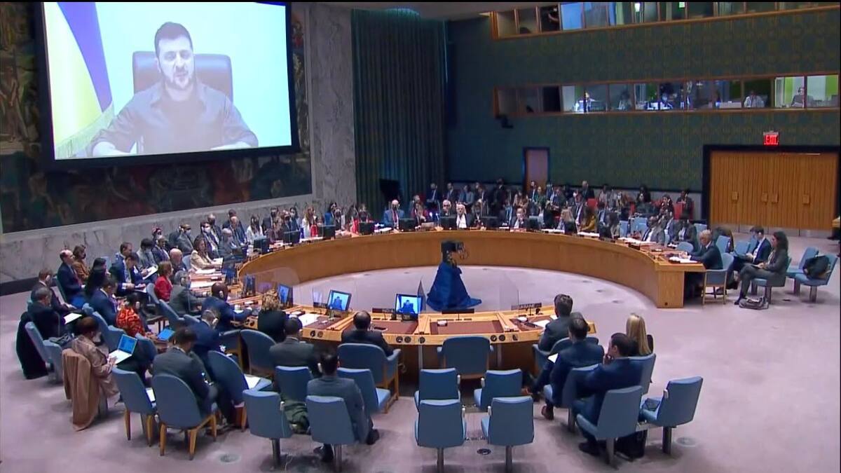 El líder ucraniano se dirigió por videoconferencia al Consejo de Seguridad y cargó con dureza contra la inacción de este órgano, donde Rusia tiene poder de veto.