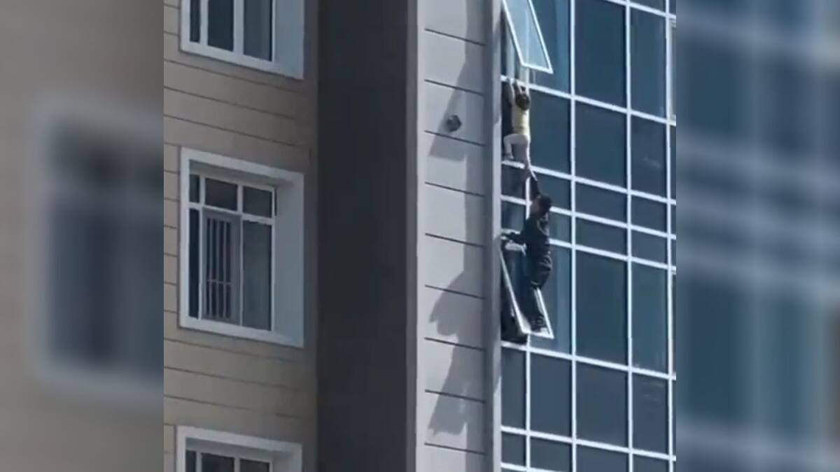 La pequeña colgaba de una ventana cuando Sabit Shontakbaev, de 37 años, quien se dirigía hacia su lugar de trabajo, se percató de que una multitud de personas miraban con angustia como la niña podía caer al vacío.