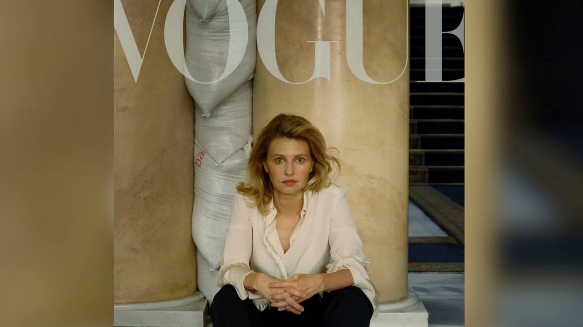 El retrato de Zelenska es portada del nuevo número de la publicación en su formato digital, donde aparece sentada en unas escaleras, vestida con un sobrio conjunto de pantalón negro y blusa blanca; mientras que en sus páginas posa junto a mujeres soldado o en pareja con Zelenski en la oficina presidencial en Kiev.