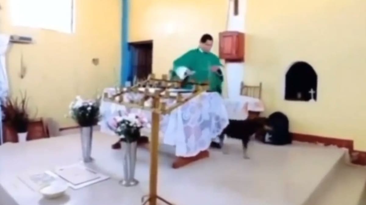 Mientras se celebraba una misa católica, un canino entró a la iglesia y se dirigió hacia el altar. Allí estaba el párroco bendiciendo las hostias que iba a repartir a los feligreses cuando, al parecer, molesto por la presencia del animal, pateó al perro.