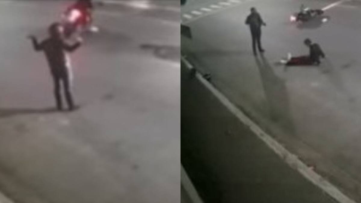 Cuando el sujeto se subió a la moto de la víctima y pretendía irse, el peso del mismo le jugó una mala pasada y ocasionó que el individuo se cayera y, junto a él, su arma de fuego. De inmediato, la víctima del robo reaccionó y corrió hacia donde estaba el delincuente para lograr quitarle la pistola.