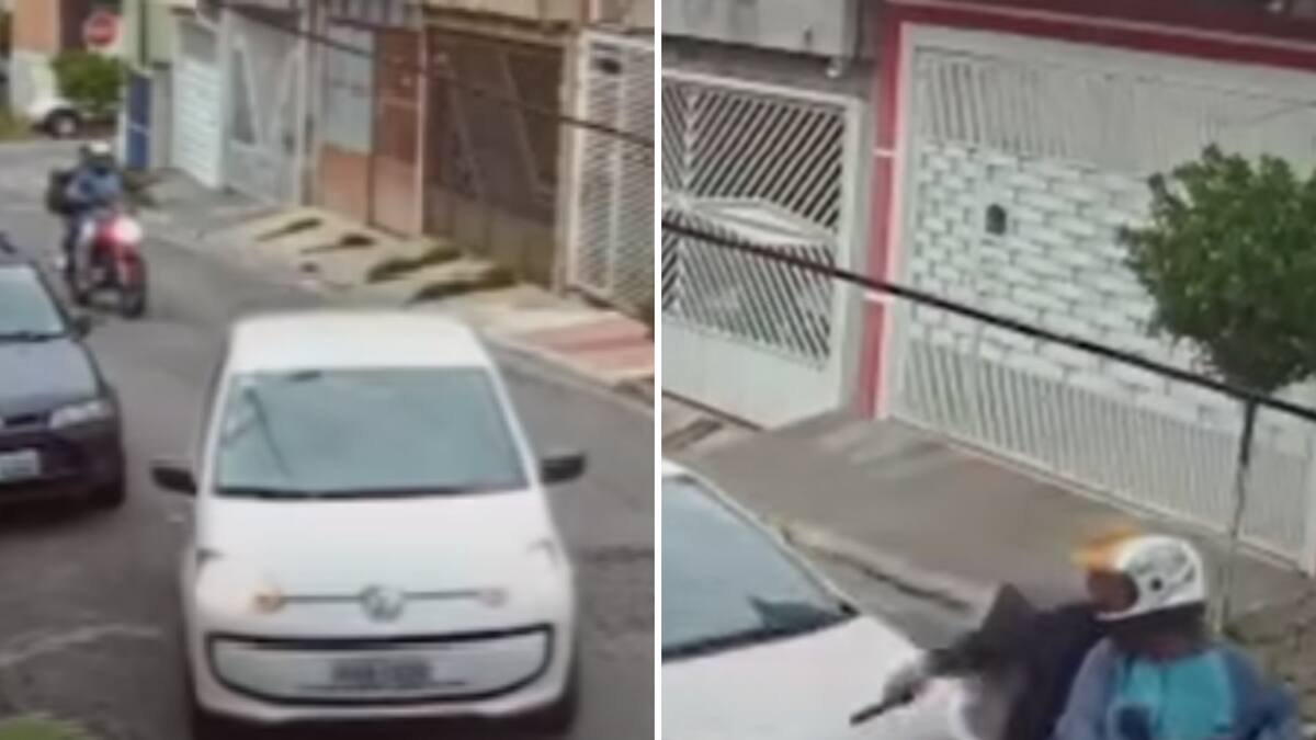 Un nuevo caso de inseguridad quedó registrado a través de una cámara de seguridad el pasado 26 de noviembre en el barrio Alvarenga, en Sao Paulo, Brasil. En las imágenes se ve cómo un conductor atropella a dos sujetos que iban armados en una moto tras intentar atracarlo justo en frente del garaje de su casa.