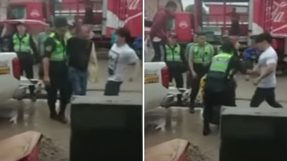 Mientras se realizaba la captura de un presunto delincuente en la región de Morales, en Tarapoto, Perú, un comerciante burlo a las autoridades para darle un fuerte golpe en el rostro a este sujeto, hecho que dejó inconsciente a la persona en el acto.
