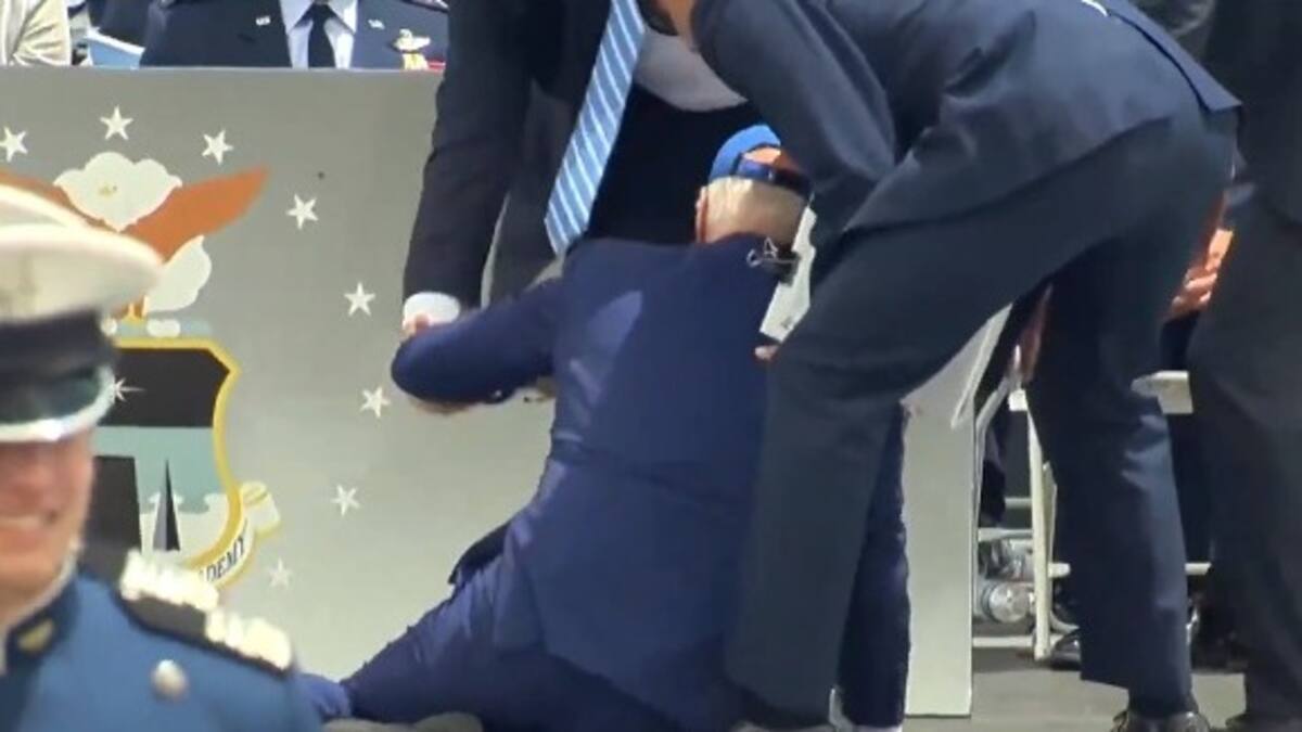 El mandatario estadounidense se trasladó este jueves desde Washington al estadio Falcon de Colorado para la ceremonia de graduación. Allí, tras dar un discurso y entregar el último diploma a los cadetes se dio la vuelta para sentarse, pero tropezó con un saco y cayó sobre sus rodillas desplomándose hacia un lado.