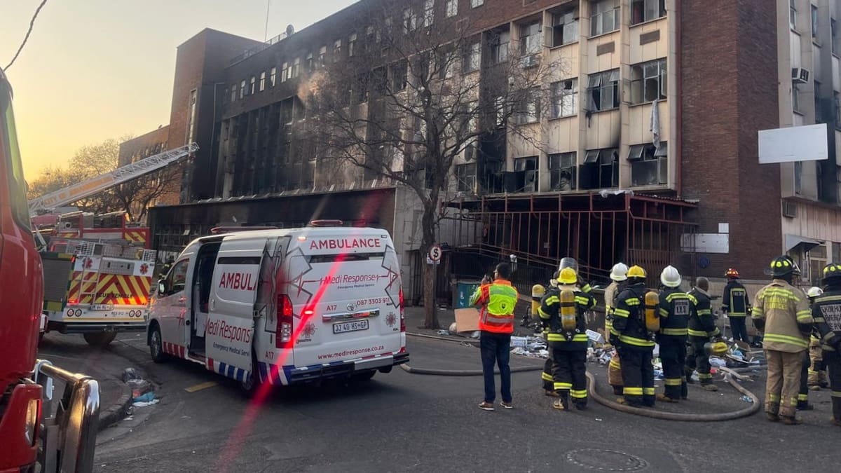 Según Mulaudzi, el fuego ya fue contenido pero continúan las 'operaciones de apagado' en la calle Albert Street, donde se halla el inmueble y hay filas de camiones de bomberos y ambulancias.