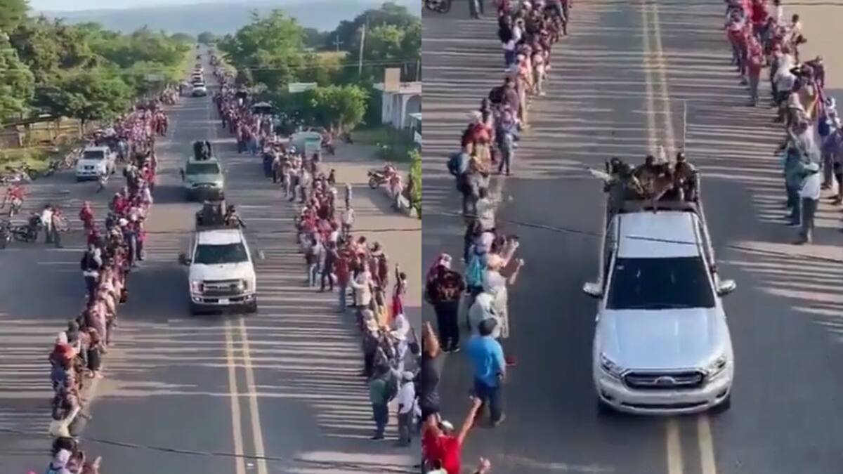 Pobladores del estado mexicano de Chiapas se reunieron a los costados de la carretera Panamericana para aplaudir a un grupo armado, identificado como parte del cártel de Sinaloa, que liberó las vías de comunicación durante su paso de la localidad de La Trinitaria al municipio de Frontera Comalapa, en la misma entidad sureña.