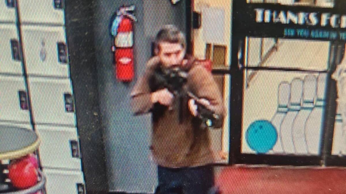En las imágenes publicadas en redes sociales por la oficina del alguacil del condado de Androscoggin se puede ver a un hombre con un fusil de asalto entrando en una bolera.