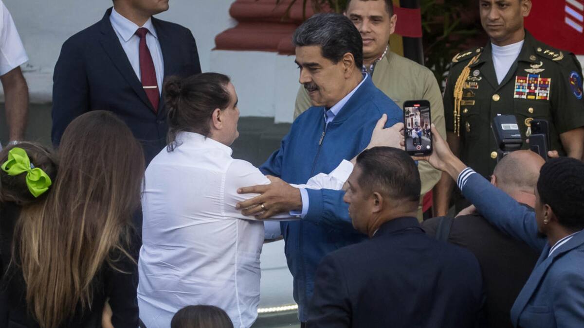 Maduro recibió con abrazos a Saab, a quien calificó como 'un hombre valiente y patriota' que 'resistió por 40 meses las condiciones más adversas y dolorosas de secuestro', en alusión al tiempo que estuvo en prisión.
