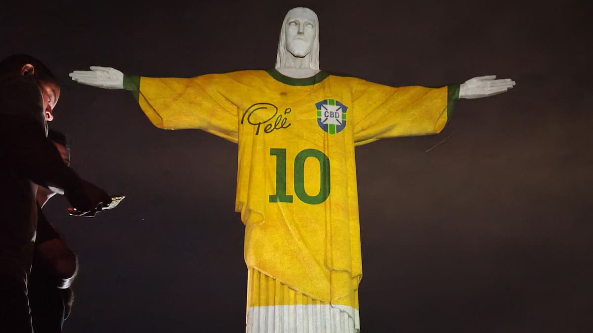 Ante el Cristo de 30 metros con sus brazos abiertos en la cima del cerro del Corcovado, con una camisa proyectada durante varios minutos y en que se destacaba el número 10 del dorsal del tres veces campeón mundial y su emblemática firma, decenas de aficionados homenajearon al considerado mejor futbolista de todos los tiempos.
