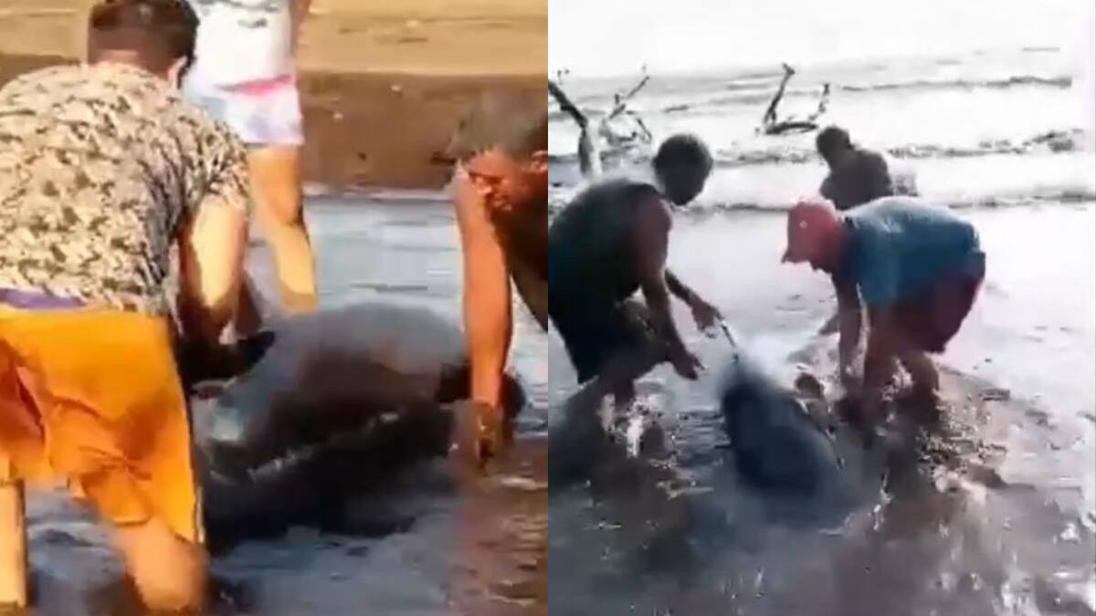 Explicó que voluntarios de la comunidad, trabajadores del lugar, pescadores y guardaparques, junto a veterinarios y biólogos de su despacho, activaron de inmediato 'la labor de rescate y reorientación de la especie a mar abierto'.