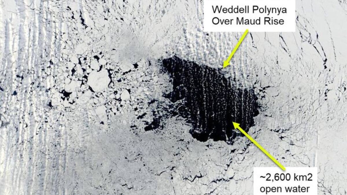 Se trata de un fenómeno meteorológico que perfora grandes agujeros en el hielo en el Antártico, en el mar de Weddell, el cual está cubierto por una de las mayores superficies heladas de la Tierra.
