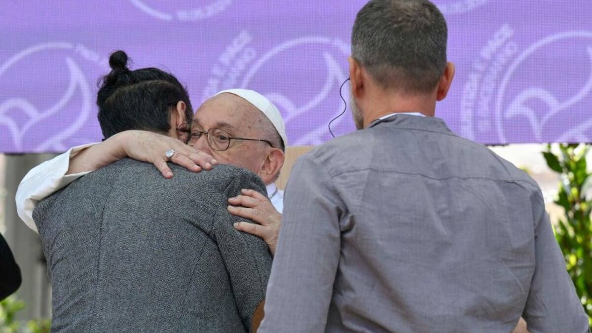 En un emotivo momento que quedó captado por cientos de cámaras, el papa Francisco abrazó este sábado a un israelí y un palestino que han perdido familiares en la actual guerra, que tachó de 'derrota histórica', durante un acto por la paz en la ciudad italiana de Verona (norte).