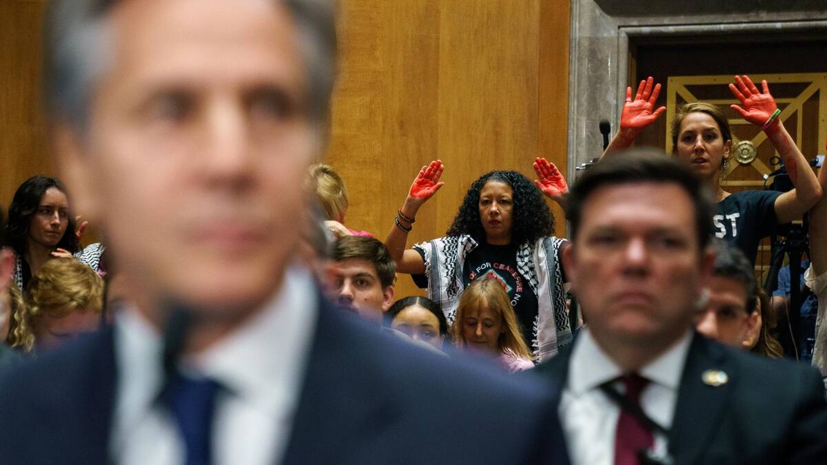 Los manifestantes se sentaron entre el público de la audiencia, detrás de Blinken, y algunos de ellos le gritaron 'criminal de guerra' y 'carnicero' cuando el secretario de Estado tomaba la palabra, tras lo cual fueron desalojados por la seguridad del Capitolio.