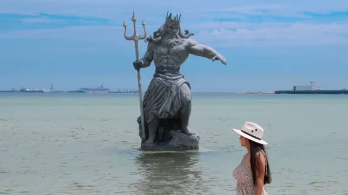 Las versiones que circulan en redes sociales sobre la estatua de Poseidón en el malecón de Progreso indican que la instalación de esta figura habría provocado “la ira” de Chaac, el dios maya del agua y la lluvia.