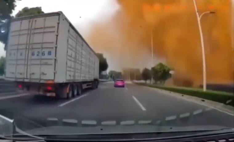 Lo que más ha sorprendido a los internautas de las imágenes es la ‘lluvia’ de excremento que provocó la explosión, alcanzando decenas de vehículos que transitaban la vía y personas que caminaban por el sector.