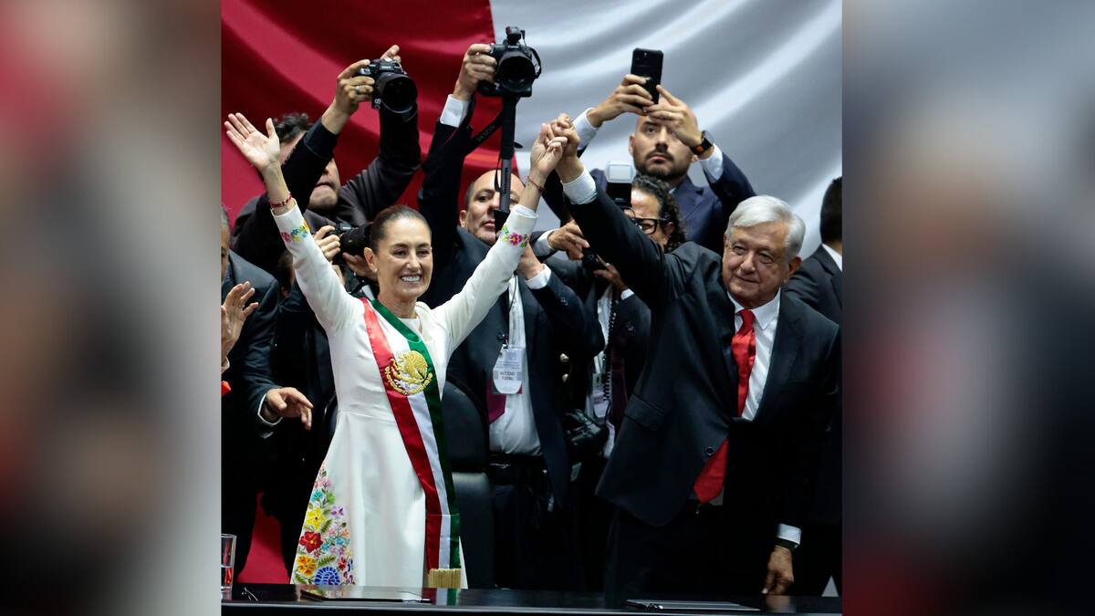 Sheinbaum asumió este martes como la primera mujer presidente de México para el sexenio de 2024-2030 tras recibir la banda presidencial del mandatario saliente, Andrés Manuel López Obrador (2018-2024), de su mismo partido, el gobernante Movimiento Regeneración Nacional (Morena).