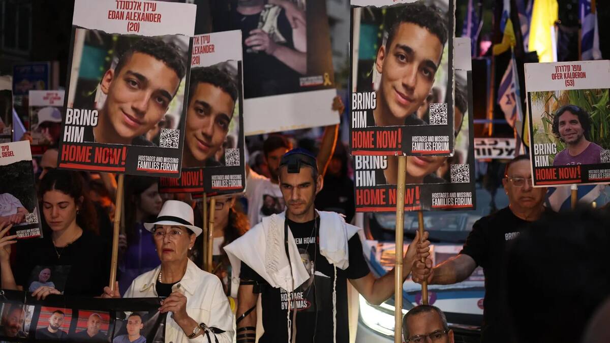 Centenares de israelíes y familiares de algunos de los 101 rehenes aún cautivos en Gaza demandaron este lunes frente a la residencia del primer ministro, Benjamín Netanyahu, y cuando se cumple un año del ataque de Hamás, un acuerdo que libere a sus seres queridos.