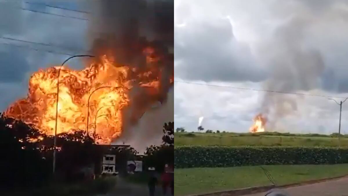 Videos que circulan por redes sociales dejan ver la magnitud del evento con una enorme columna de humo que se desprendía del gasoducto que quedó reducido a cenizas.