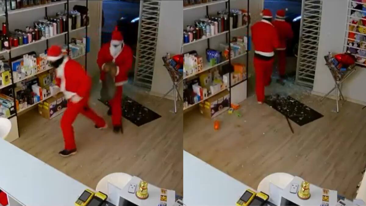 #Viral ¡Ladrones disfrazados de 'Papá Noel' asaltaron una tienda de electrónicos en Brasil! Reportes iniciales indicaron que dos delincuentes disfrazados de Papá Noel, con gorros y máscaras, ingresaron al local, ubicado en el centro de Cláudio, en la región Centro-Oeste de Minas… pic.twitter.com/FMgfkVi0UE