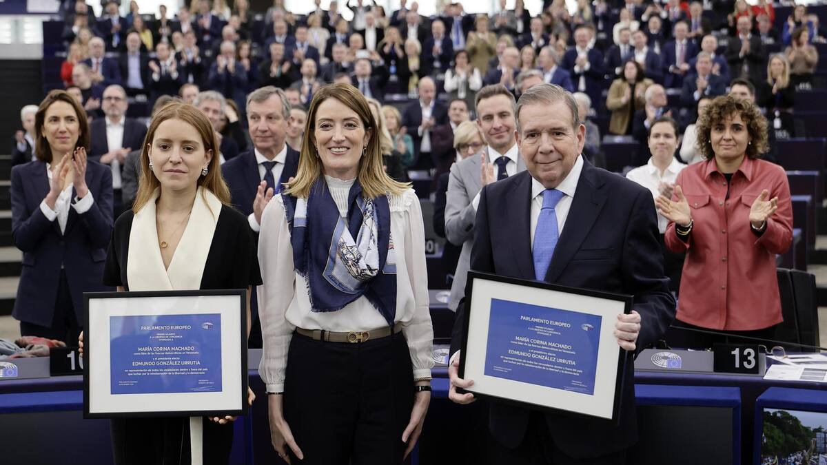La presidenta del Parlamento Europeo, Roberta Metsola, transmitió a ambos que el premio reconoce “sus esfuerzos incansables para restaurar la libertad y democracia en Venezuela y para asegurar una transición de poder justa, libre y pacífica”.