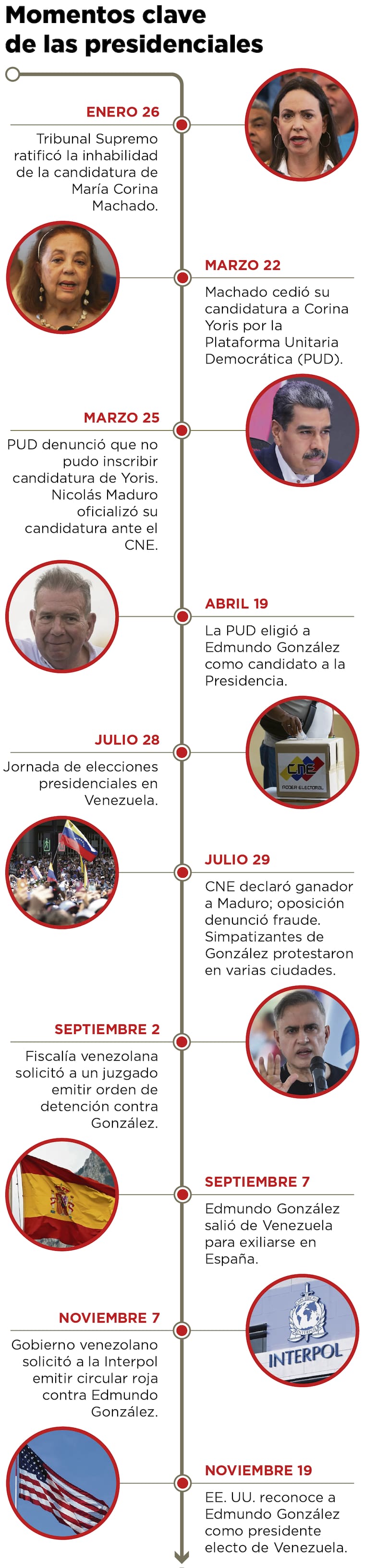 Las próximas fechas clave son el 10 y 20 de enero. En la primera, tanto Nicolás Maduro como Edmundo González planean tomar posesión como presidente de Venezuela, mientras que en la segunda lo hará Donald Trump en EE. UU.