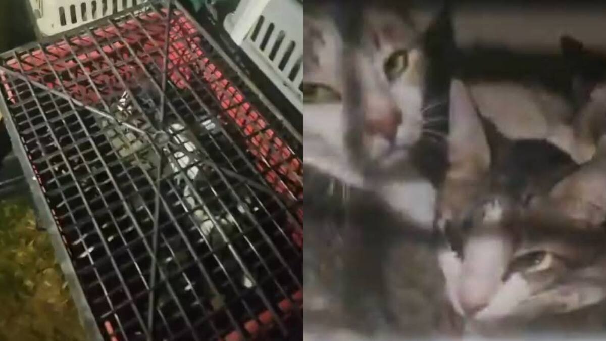 Los más de 60 gatos fueron encontrados dentro de varias cajas y jaulas metálicas, sin comida ni agua, y con distintas enfermedades.
