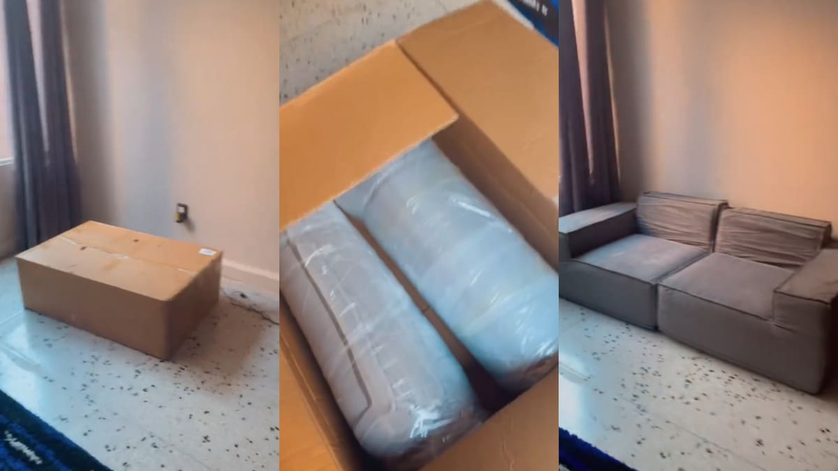 Al principio, al hombre le sorprendió el tamaño de la caja en la que venía el sofá, pues se veía bastante pequeña como para contener en su interior un mueble de tamaño real.