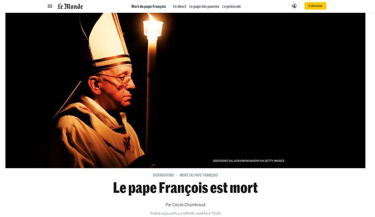 Le Monde, periódico francés que se publica en París y es considerado uno de los diarios más importantes de Europa, tituló: “El Papa Francisco ha muerto”.