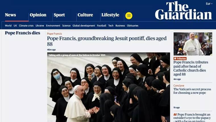 El medio británico The Guardian, de los más importantes en Reino Unido, destacó que Francisco fue el primer papa jesuita de la historia.
