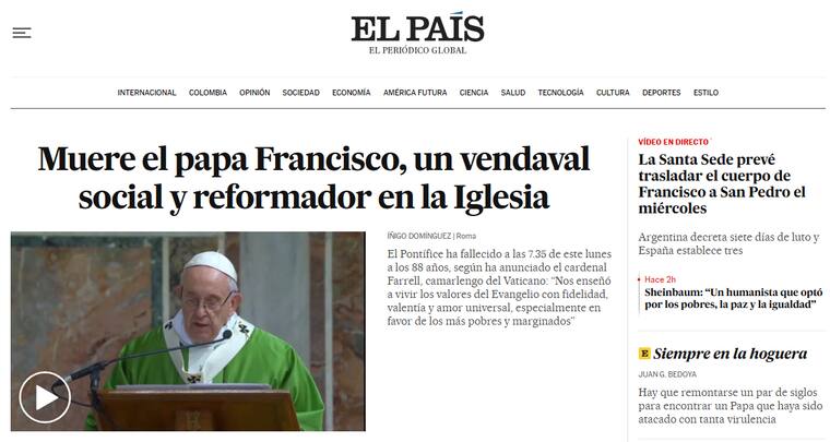 El País, de España, también resaltó la fuerza “transformadora” que imprimió Francisco en la Iglesia católica.