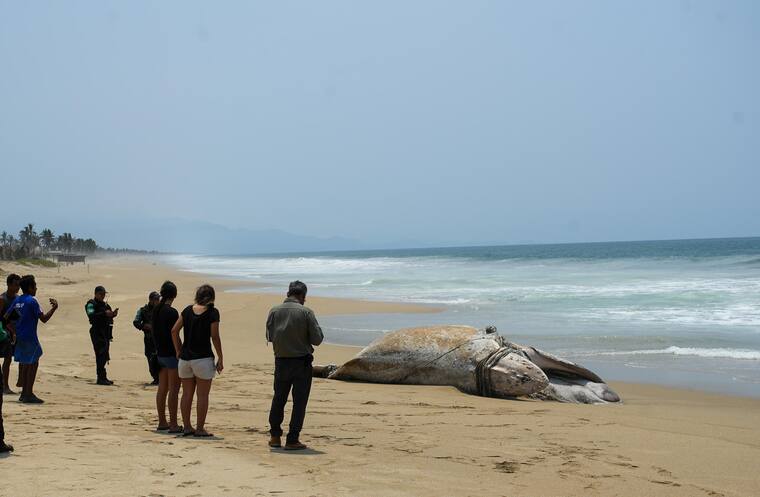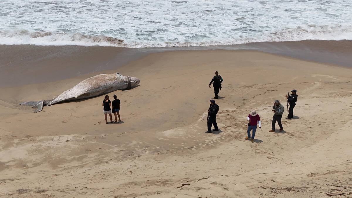 Una ballena jorobada murió varada en la playa de Coyuca de Benítez, en Guerrero, estado del sur de México, con una cuerda amarrada y parte de una red de pesca en la cola, por lo que ambientalistas denunciaron este miércoles que fue culpa de pescadores irresponsables.