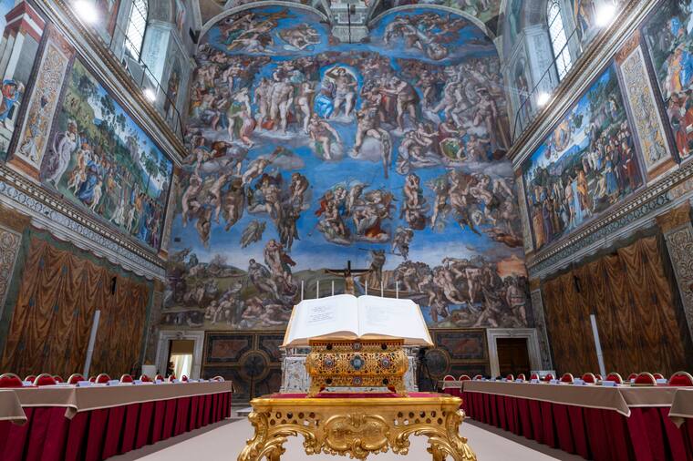 Los purpurados ocuparán en dos filas las paredes laterales y uno de los fondos - el opuesto al muro del Juicio Final - por lo que todos tendrán visibles esos frescos, según el vídeo difundido por la Santa Sede.