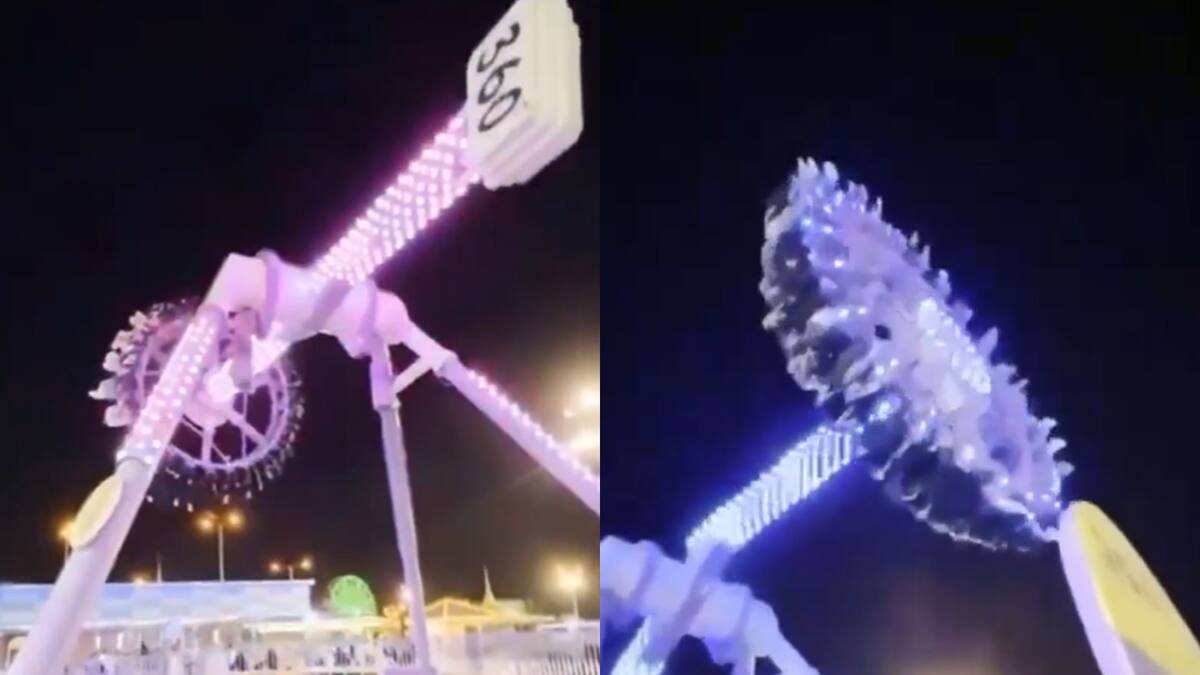 En los videos difundidos se observa como la estructura mecánica sufre una falla en uno de los brazos principales, provocando que colapse por completo. La atracción se desploma y arroja a varias personas a gran altura.