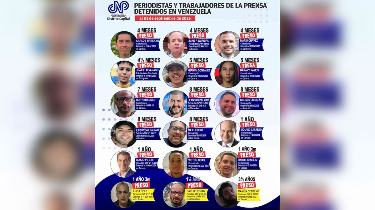 El Colegio Nacional de Periodistas (CNP) de Venezuela pidió este martes la liberación de 18 trabajadores del medio que permanecen detenidos, al tiempo que alertó sobre una “crisis” de libertad de prensa en el país.