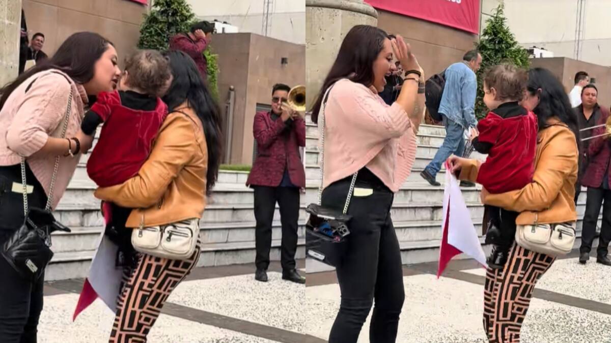 En las imágenes se observa a la protagonista acompañada de una bebé y de otra mujer. Al fondo una agrupación toca algunas canciones de música de banda típica de México.