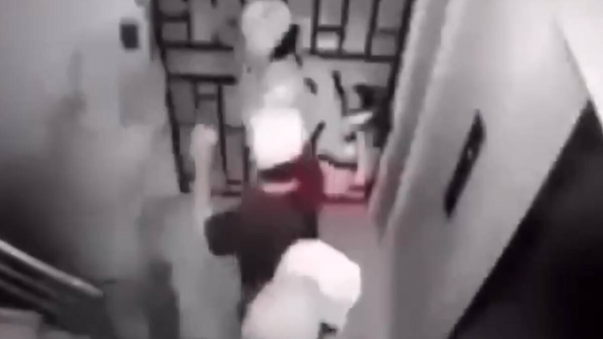 En el video se ve a los cinco hombres ingresando al inmueble por las escaleras, con los rostros cubiertos y armados con fusiles de alto calibre.