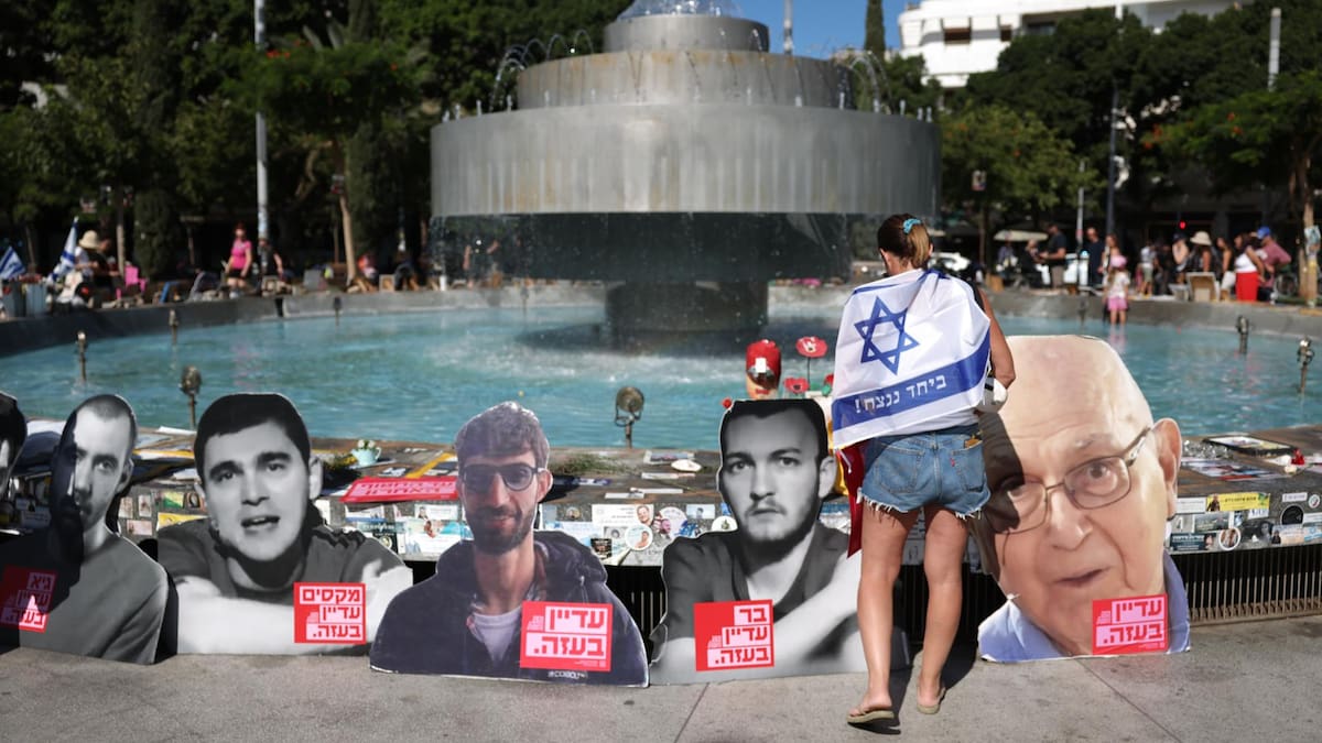 Un poco más al sur, en la conocida como la Plaza de los Rehenes de Tel Aviv, donde las familias de secuestrados y asesinados han situado su cuartel operativo desde el inicio de la tragedia, cientos de personas se reúnen a la espera de la retransmisión del evento.