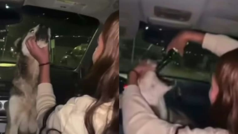 En las imágenes se observa como una de las jóvenes, que estaba sentada en el asiento del copiloto, sujeta al canino por el cuello para inmovilizarlo y con su otra mano le presiona el hocico para que ingrese la bebida embriagante, que en este caso se evidencia se trata de una cerveza.