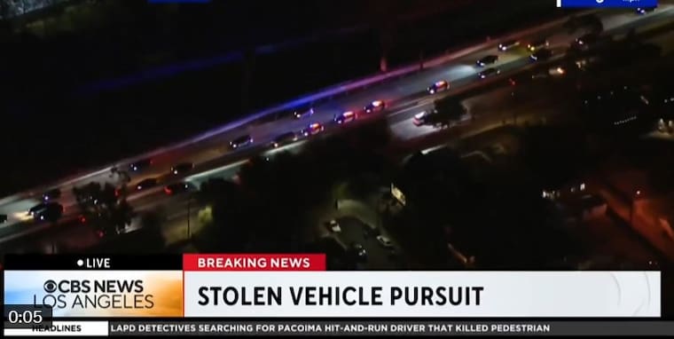 El hombre era sospechoso de haber robado una camioneta blanca, lo que dio inicio a una intensa persecución por parte de las autoridades cerca de las 9:00 p.m., sobre la autopista 110, en el sector de Montecito Heights.