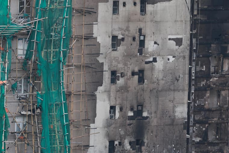 Los inmuebles se hallaban cubiertos por andamios de bambú revestidos con mallas de seguridad debido a trabajos integrales de renovación de todo el complejo.
