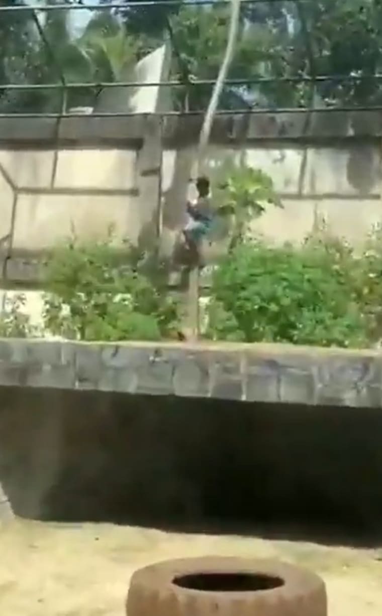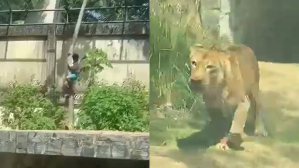 En un video del incidente registrado por uno de los visitantes que se encontraba en ese momento en el lugar, se observa al hombre bajar por el tronco de un árbol, mientras la leona se va acercando lentamente hacia él y luego lo atrapa cuando llega al piso.