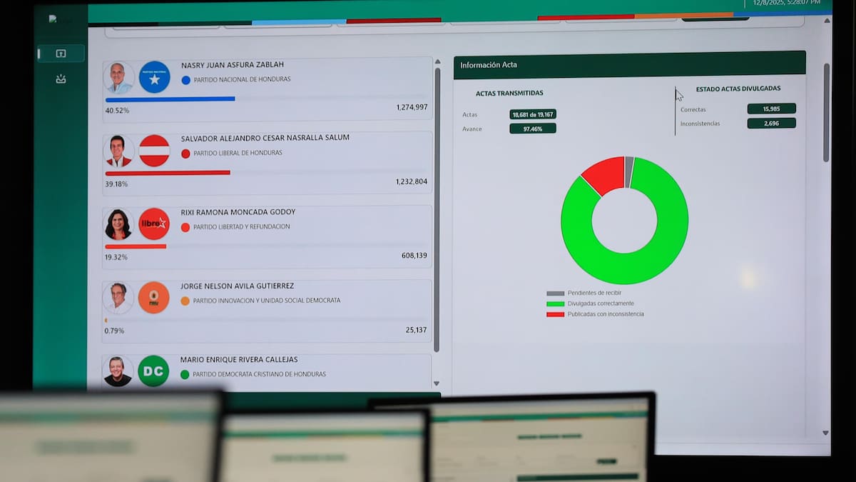 Asfura lidera el último recuento oficial de votos del CNE con 1.298.835 (40,52 %), seguido por el candidato del también conservador Partido Liberal, Salvador Nasralla, con 1.256.428 sufragios (39,48 %).