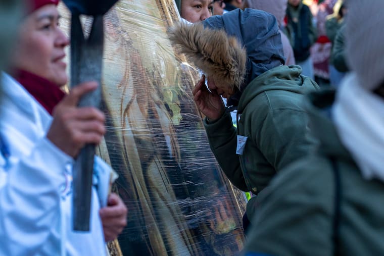 Luego, uno a uno se acercaban a la imagen de la virgen que cruzó la frontera, la tocaban, se arrodillaban y oraban ante ella.