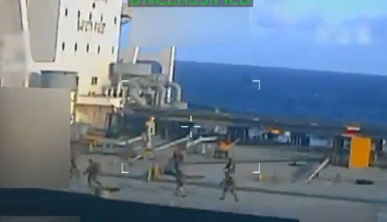 Según imágenes difundidas por la Fiscalía estadounidense, tropas fuertemente armadas abordaron la nave tras descender desde un helicóptero y tomaron el control de esta gran embarcación, de 333 metros de eslora.