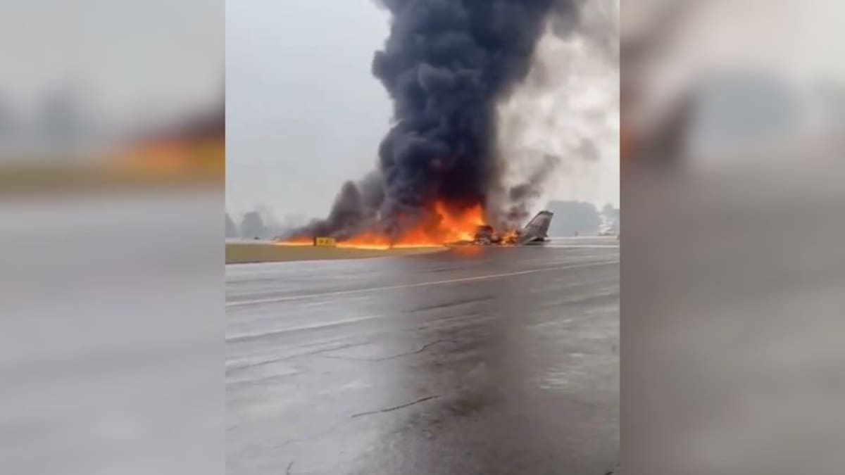 Imágenes difundidas desde el aeropuerto mostraron a la aeronave envuelta en una gran bola de fuego tras el impacto.